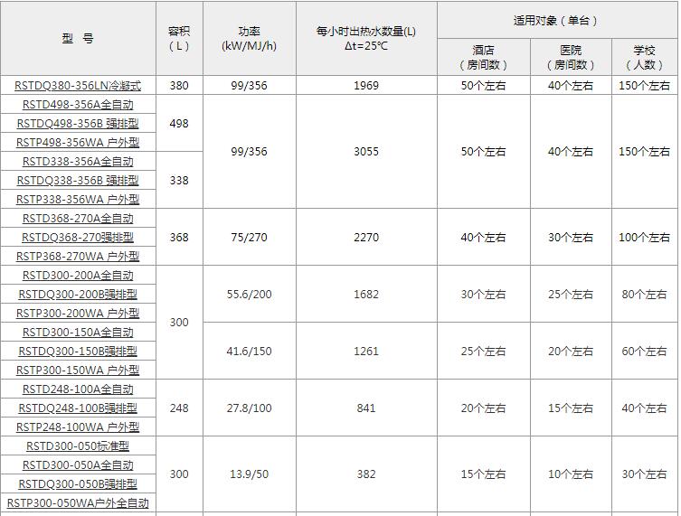 大容量大功率,加热速度快热水产率高,满足大量、多点、集中、持续用热水需求。是满足商用热水需求综合能耗低与节能的优选品类。